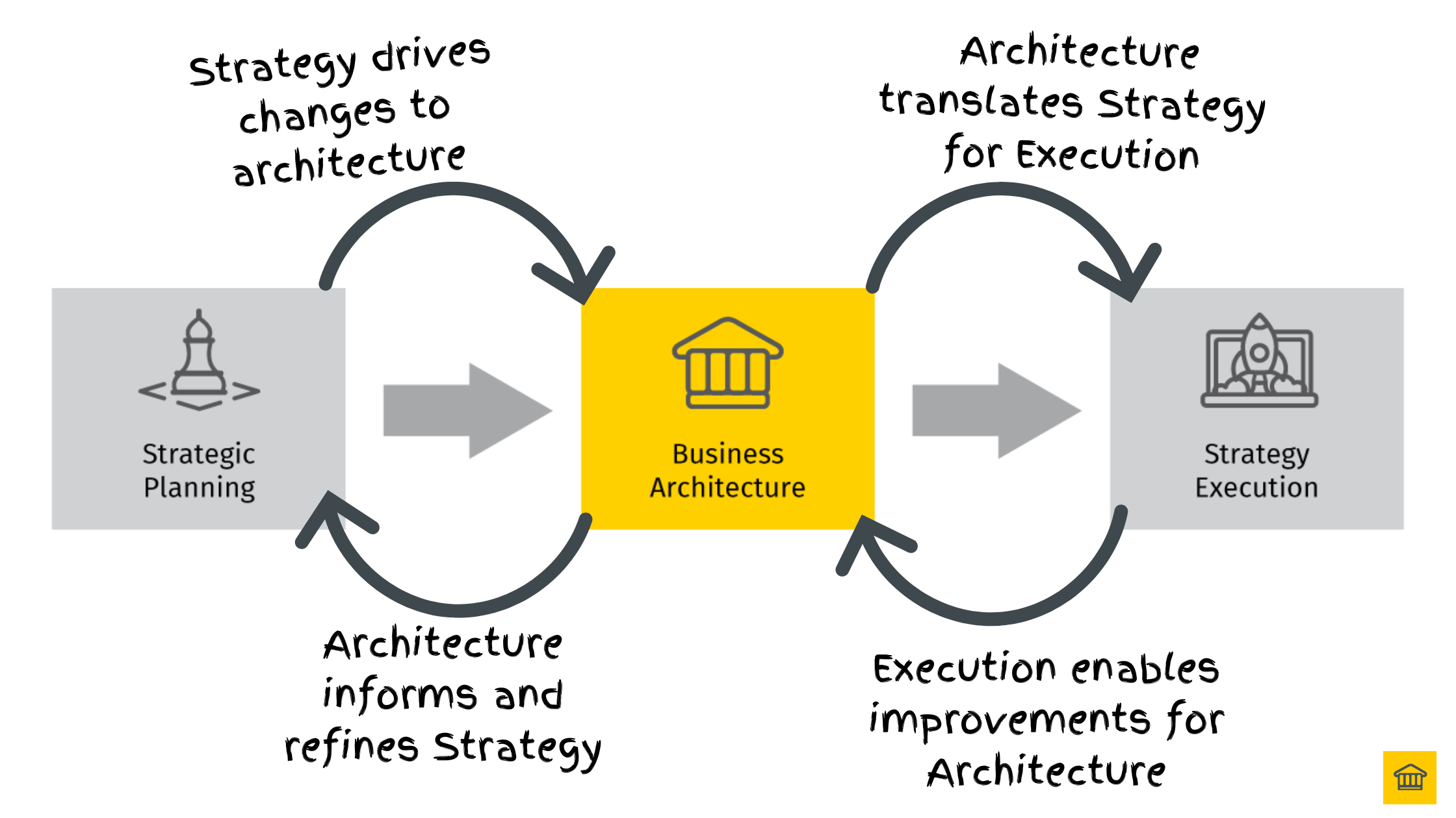 To put it simply, business architecture enables strategic planning and strategic execution. And it used to align the businesses’ aims and objectives.