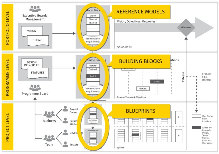 This ensures the Business Architecture, methods, standards and best practices are maintained, as there are always ‘eyes’ on it, with regular review and feedback, releasing latest and up to date versions of architecture Reference Models, Building Blocks and Blueprints in regular intervals (end of sprints) at regular cadence, that allows further work to continue.